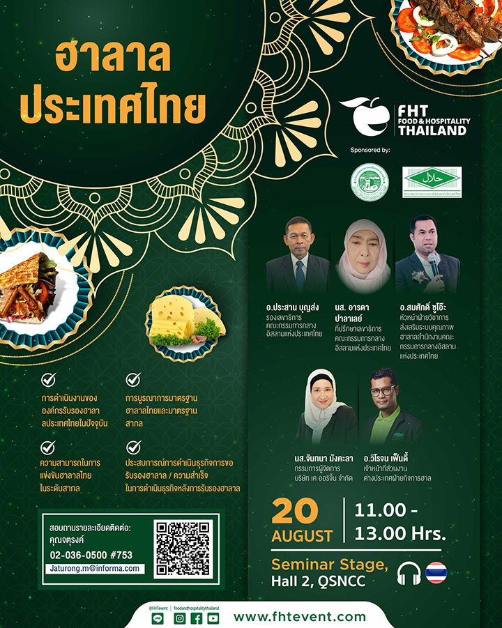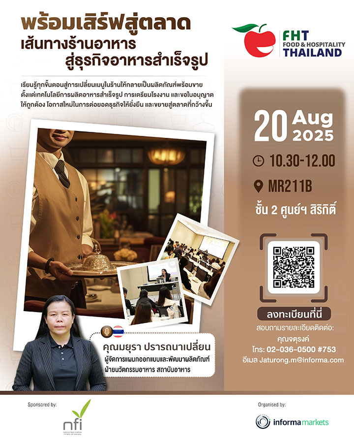 As a key highlight of Thai Tourism & Hospitality Week, Food & Hospitality Thailand (FHT) 2025 enters its 31st edition, offering even more exciting solutions and activities for the food & drink, and hospitality industries. With the theme "Connecting Excellence in Food & Hospitality" FHT brings together leading companies and industry professionals, showcasing best-in-class solutions and cutting-edge technologies. This dynamic event builds connections, ignites fresh ideas, and enhances Thailand's tourism industry by promoting excellence in every aspect. FHT 2025 serves as the premier platform for local and international businesses in the food and hospitality sectors to connect, share their expertise, and drive their success to new heights.